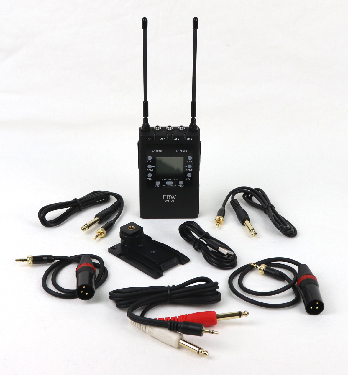 FBW WT-U8 двухканальный портативный приёмник, FM модуляция CH1 512-537МГц, CH2 564-589МГц, раздельные балансные 3.5мм выходы, небалансный 3,5мм выход суммы каналов, выход на наушники.