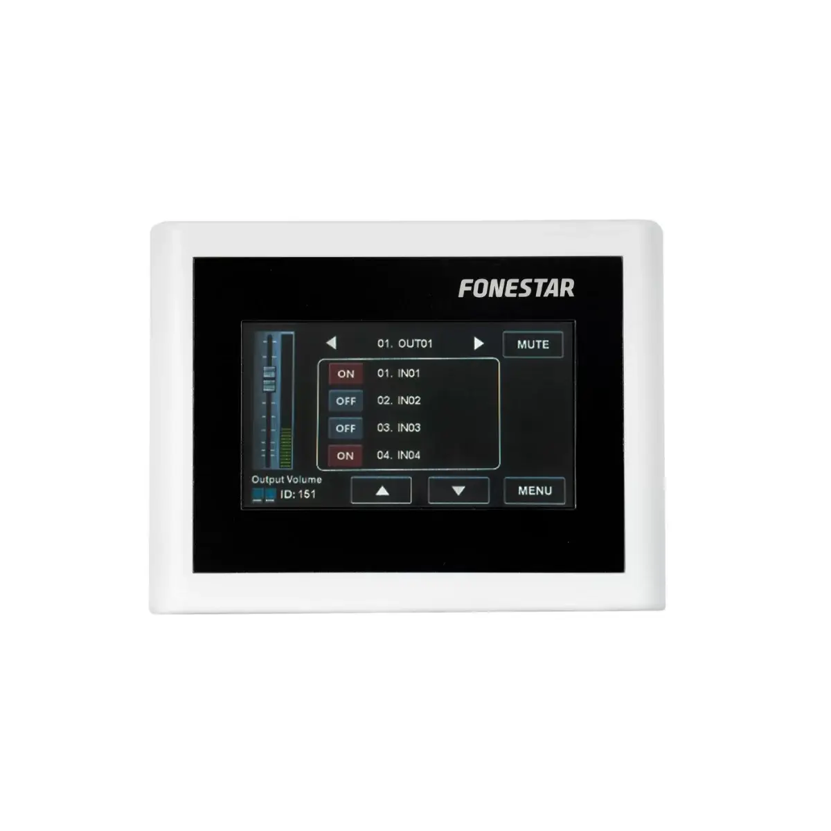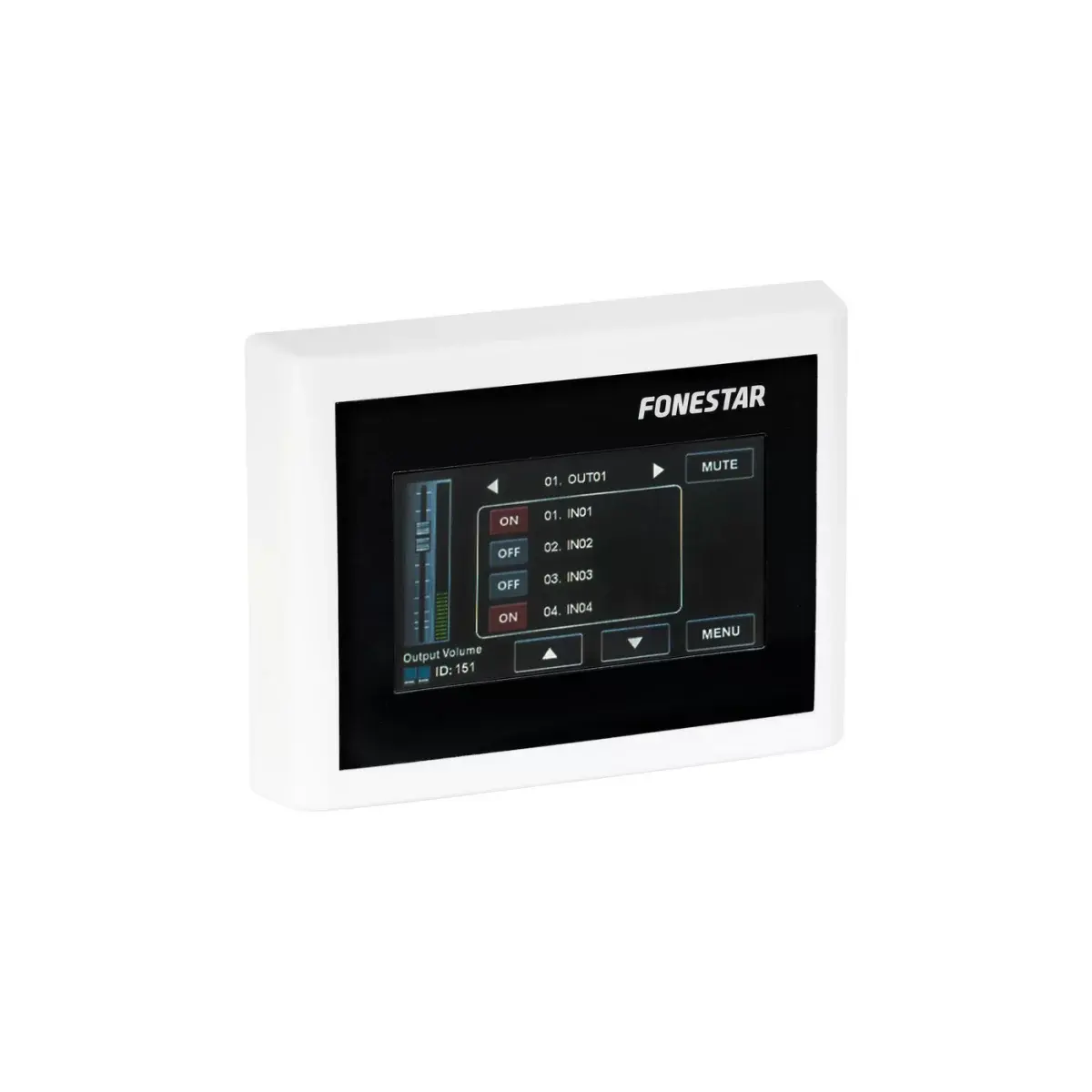 Пульт управления громкостью FONESTAR MPX-460P - это дополнительный прибор применяемый с целью расширения функциональности цифро-аналоговой аудиоматрицы MPX-4088.Обеспечивает возможность дистанционного управления уровнем громкости в выбранной зоне вещания + запуск сценария, если таковой записан в матрицу. Сенсорный LCD-дисплей с отличным откликом на касание.