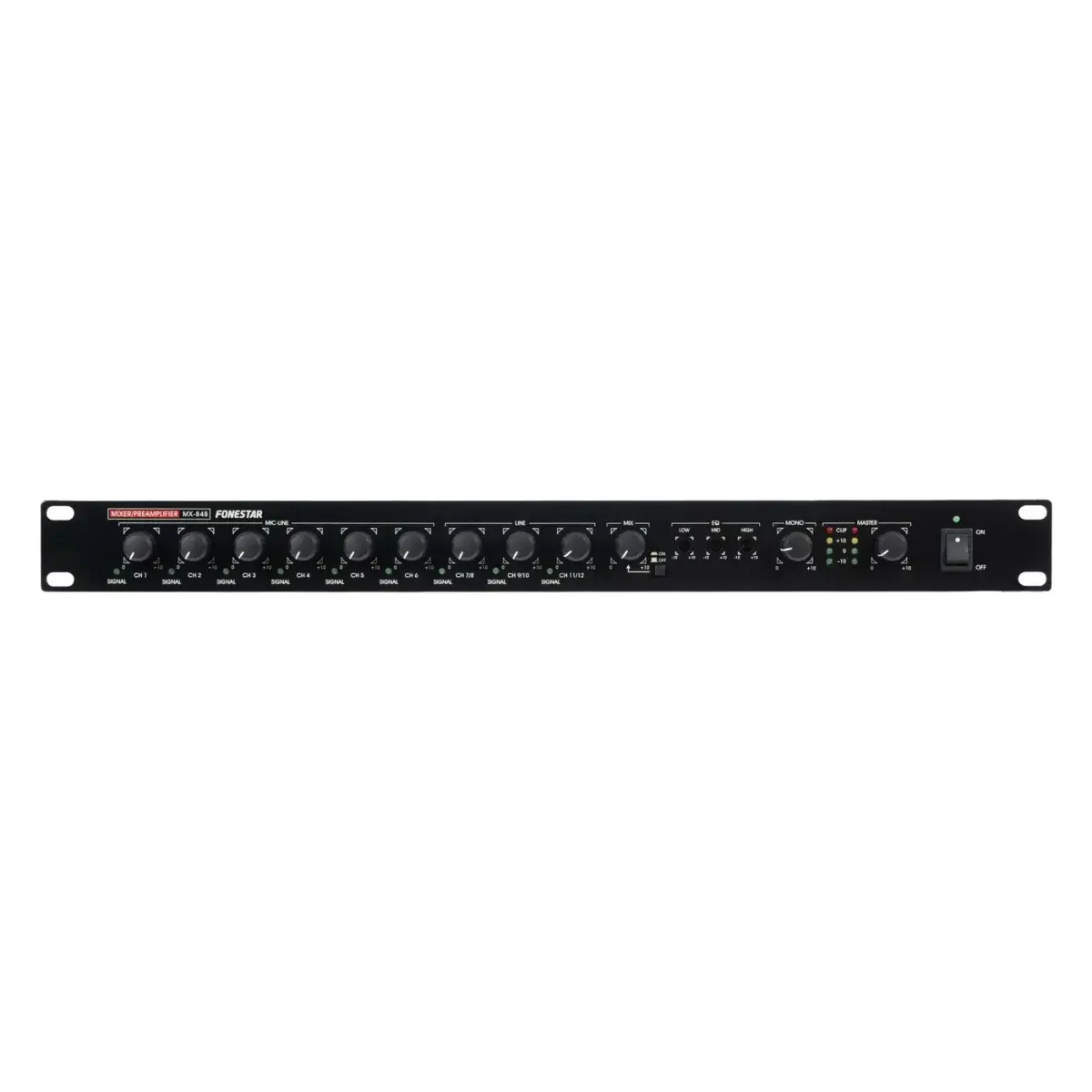 1 лин. выход, 2 x RCA 1000 Ом 775 мВ - УПРАВЛЕНИЕ: Регуляторы: мастер выход НЧ, СЧ и ВЧ. Громкость: входы 1 — 12, общая громкость (стерео и моно мастер)
