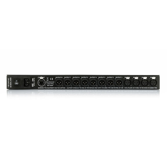 Обеспечивает высокое качество звука, но при этом позволяет экономить за счёт управления через Ethernet с ПК, MAC или Apple I PAD. На передней панели есть индикаторы уровня сигнала для всех каналов, но нет элементов управления.Входы и выходы программно переключаются в парах каналов между аналоговым и AES/EBU. Гибкость программного обеспечения FATWARE обеспечивает простоту проектирования системы. Для каждого входа указано сжатие звука. Фильтр высоких частот, 6-полосный параметрический эквалайзер и задержка до 1,3 секунды — всё это входит в спецификацию.