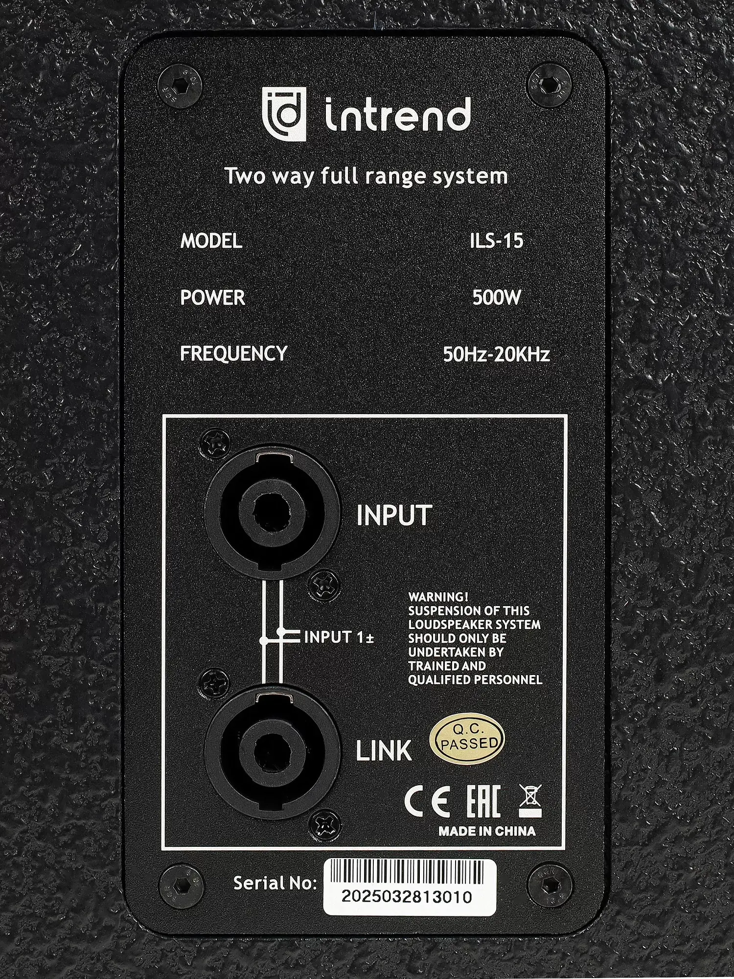 Акустическая система Intrend ILS-15 Документация и программное обеспечение по звуковому оборудованию Intrend Акустическая система ILS-15 – это мощная двухполосная пассивная акустическая система с 15-дюймовым НЧ-динамиком и компрессионным ВЧ-драйвером. Ее характеристики делают ее универсальным решением для различных сценариев, где требуется чистый, громкий и детализированный звук. ILS-15 – это универсальная АС для профессионального использования там, где нужен мощный, чистый звук с хорошими басами. Она подходит как для музыки, так и для речи, а ее пассивная конструкция позволяет использовать любой подходящий по мощности усилитель, без дополнительных ограничений. Основные особенности: Высокая мощность (500 Вт) и максимальный SPL 131 дБ позволяют озвучивать средние и крупные площадки Стабильная работа на высокой громкости без искажений Широкая диаграмма направленности (80° × 50°) обеспечивает равномерное покрытие зрительской зоны Мощный низкочастотный отклик (от 49 Гц) хорошо передает басы, что важно для электронной и танцевальной музыки Разъемы Speakon NL4 обеспечивают надежное подключение Наличие крепежных закладных (M8) и стакана 35 мм позволяет подвешивать на фермы или ставить на штативы Cферы применения: Концерты и живые выступления Клубы, бары, уличные фестивали, концертные залы (в качестве основной или мониторной АС) Диджей-сеты и электронная музыка Ночные клубы, рейвы, open-air вечеринки Театр, корпоративы и конференции Конференц-залы, театральные площадки, свадьбы, презентации Озвучивание храмов и больших помещений Церкви, спортивные комплексы, торговые центры Мобильные выездные системы Выездные мероприятия, уличные кинотеатры, рекламные акции