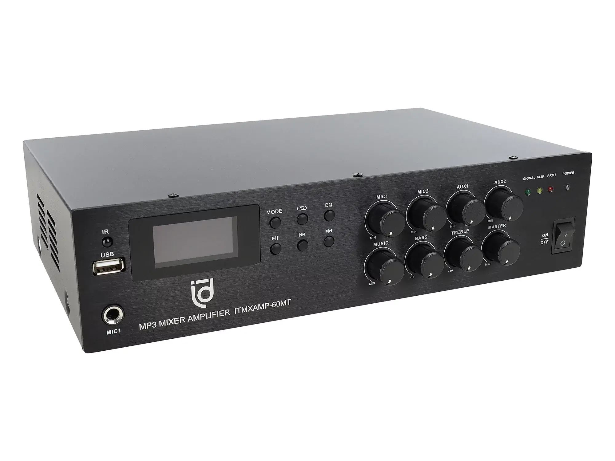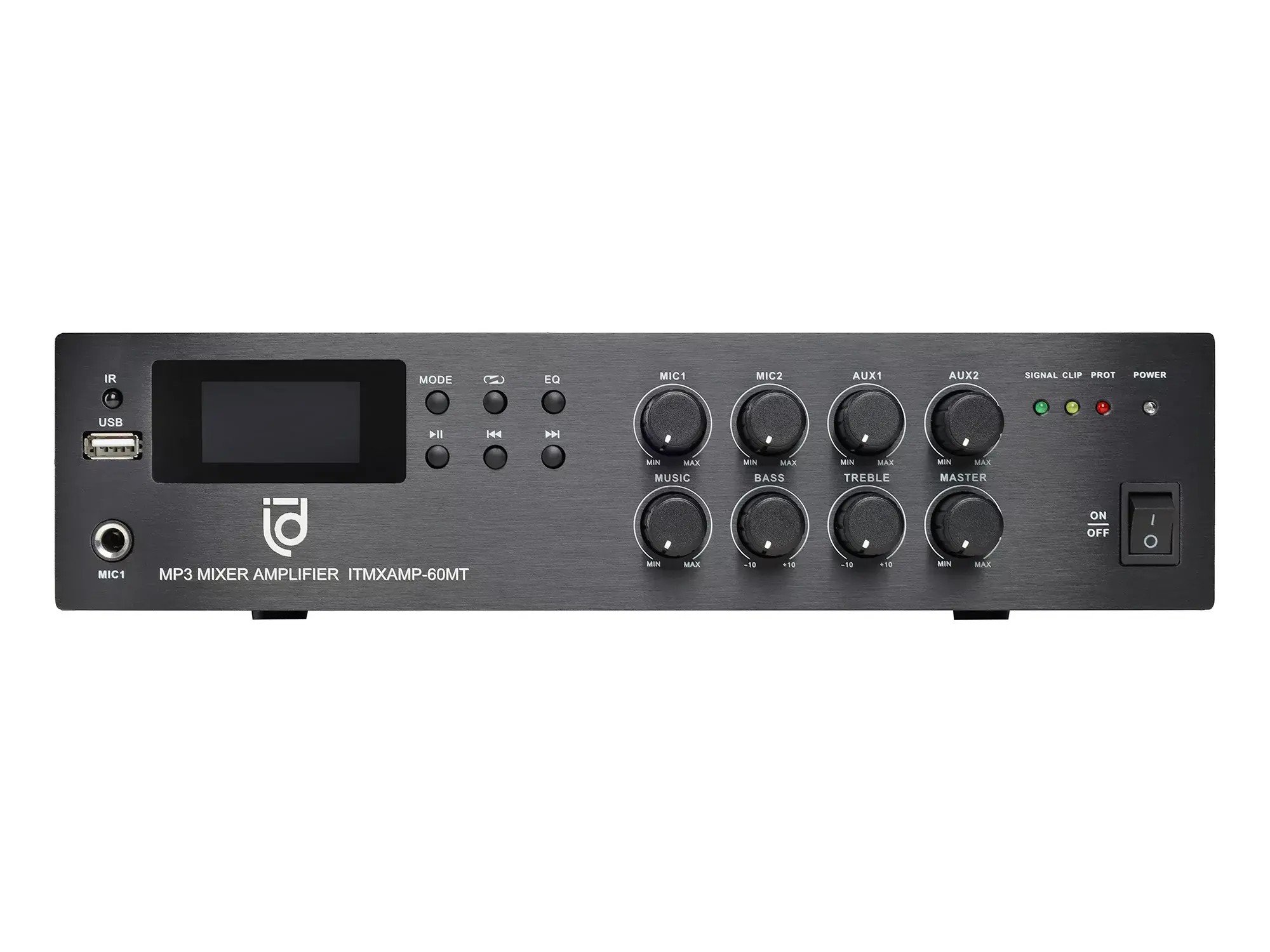 Микшер-усилитель Intrend [ITMXAMP-60MT] MP3, FM тюнер, USB, Bluetooth, 2хMic/3хLine входы, 1хLine выход,60 Вт, 4/8Ом/100V, IR-пульт в комплекте