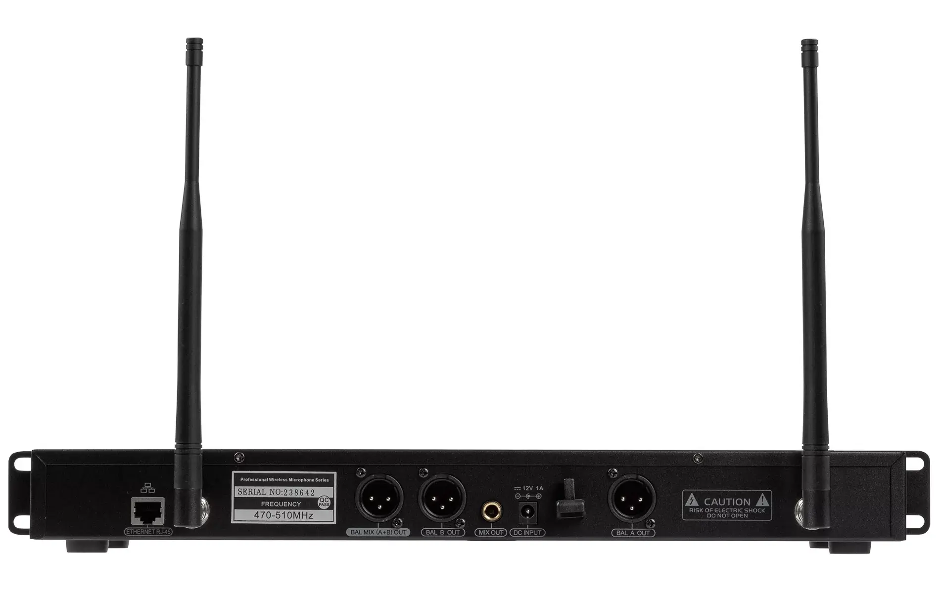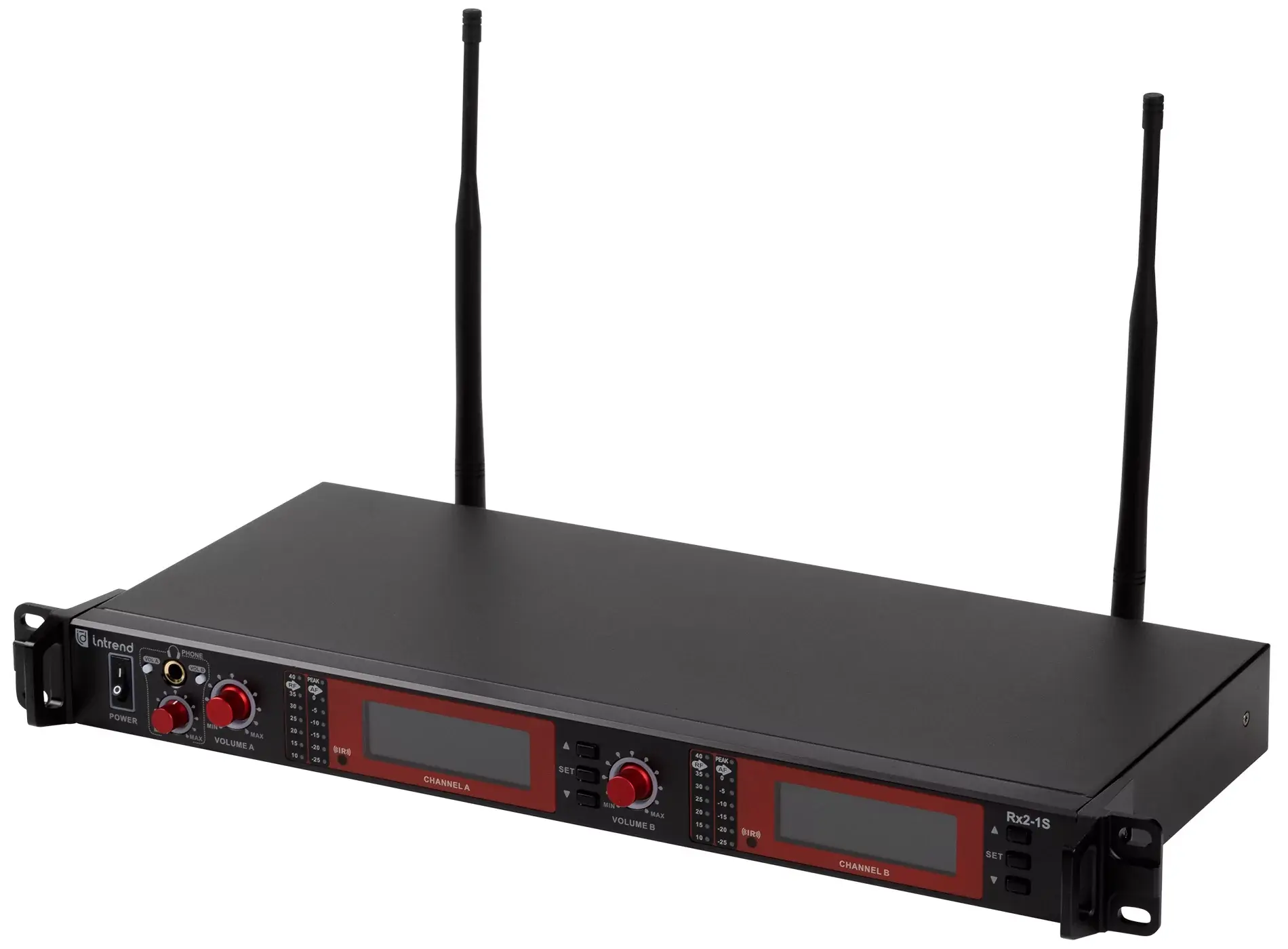 Приемник Intrend [ITWMIC-Rx2-1S] беспроводной, двухканальный, технология ID-кодирования, True diversity, 200 каналов, управление приемниками (до 20 каналов) с помощью специализированного ПО. Одновременная работа до 20 каналов