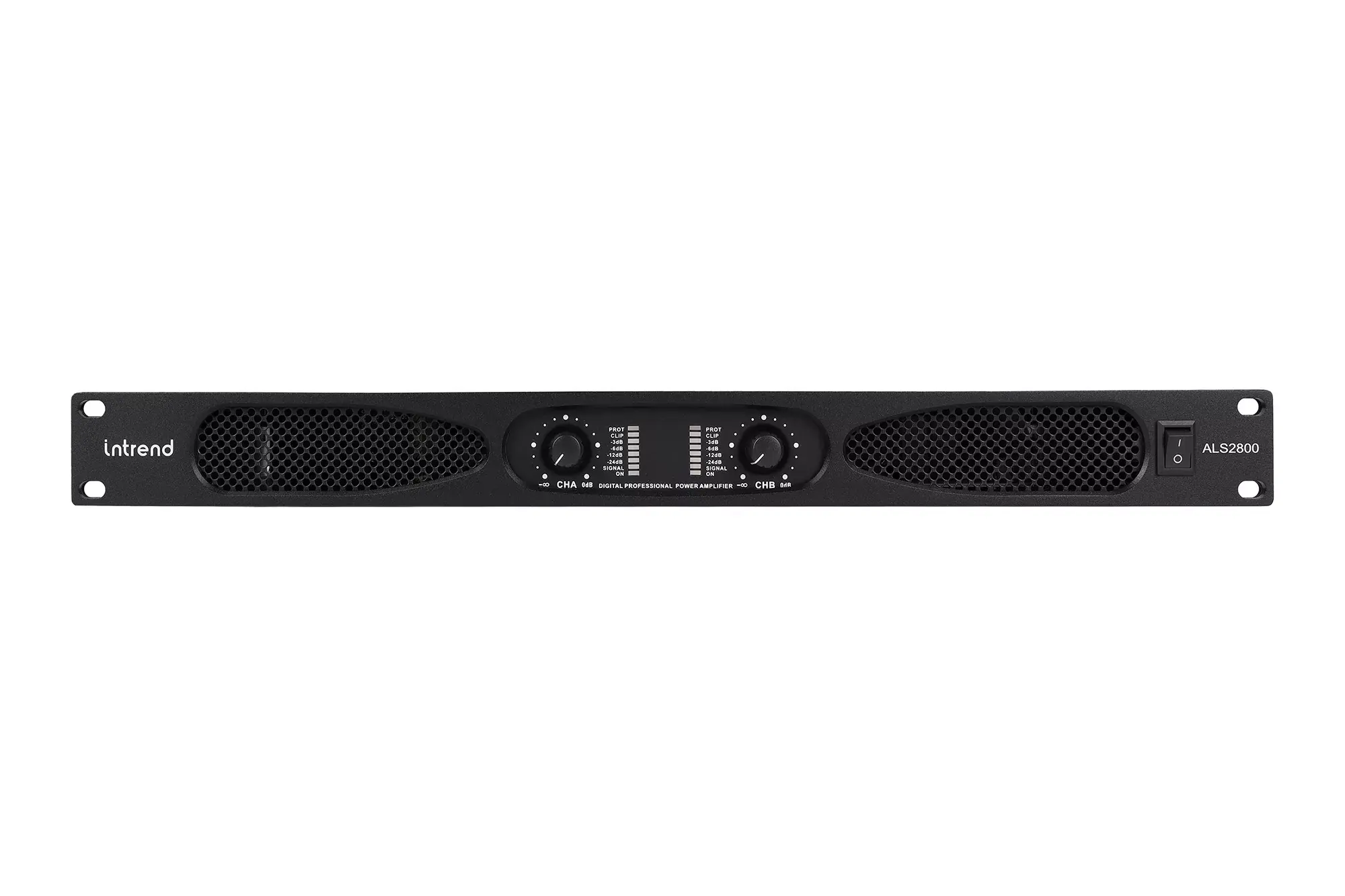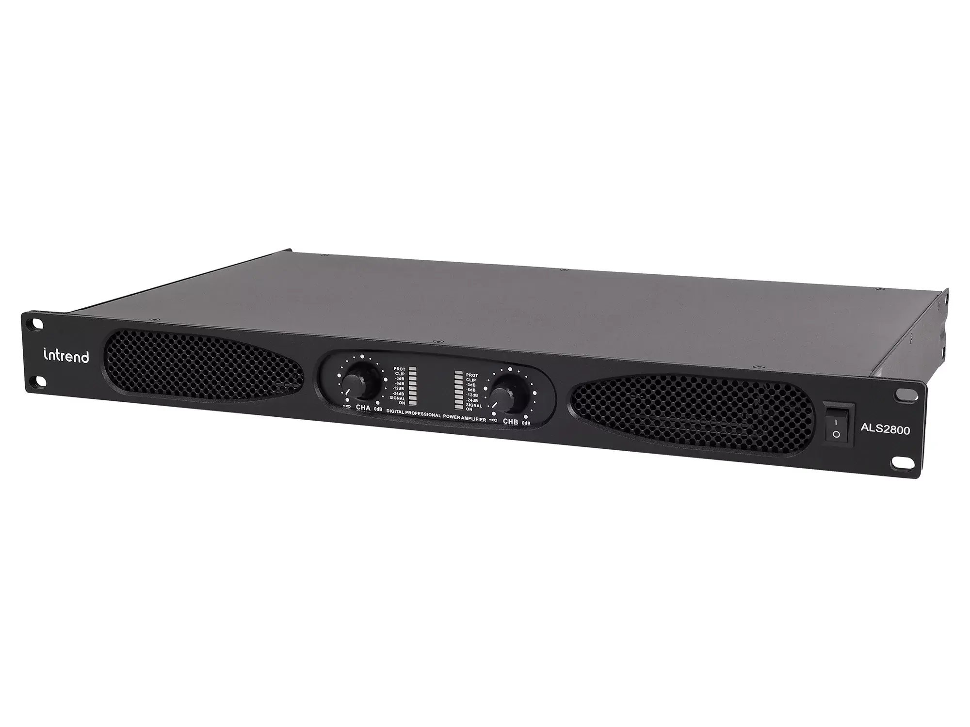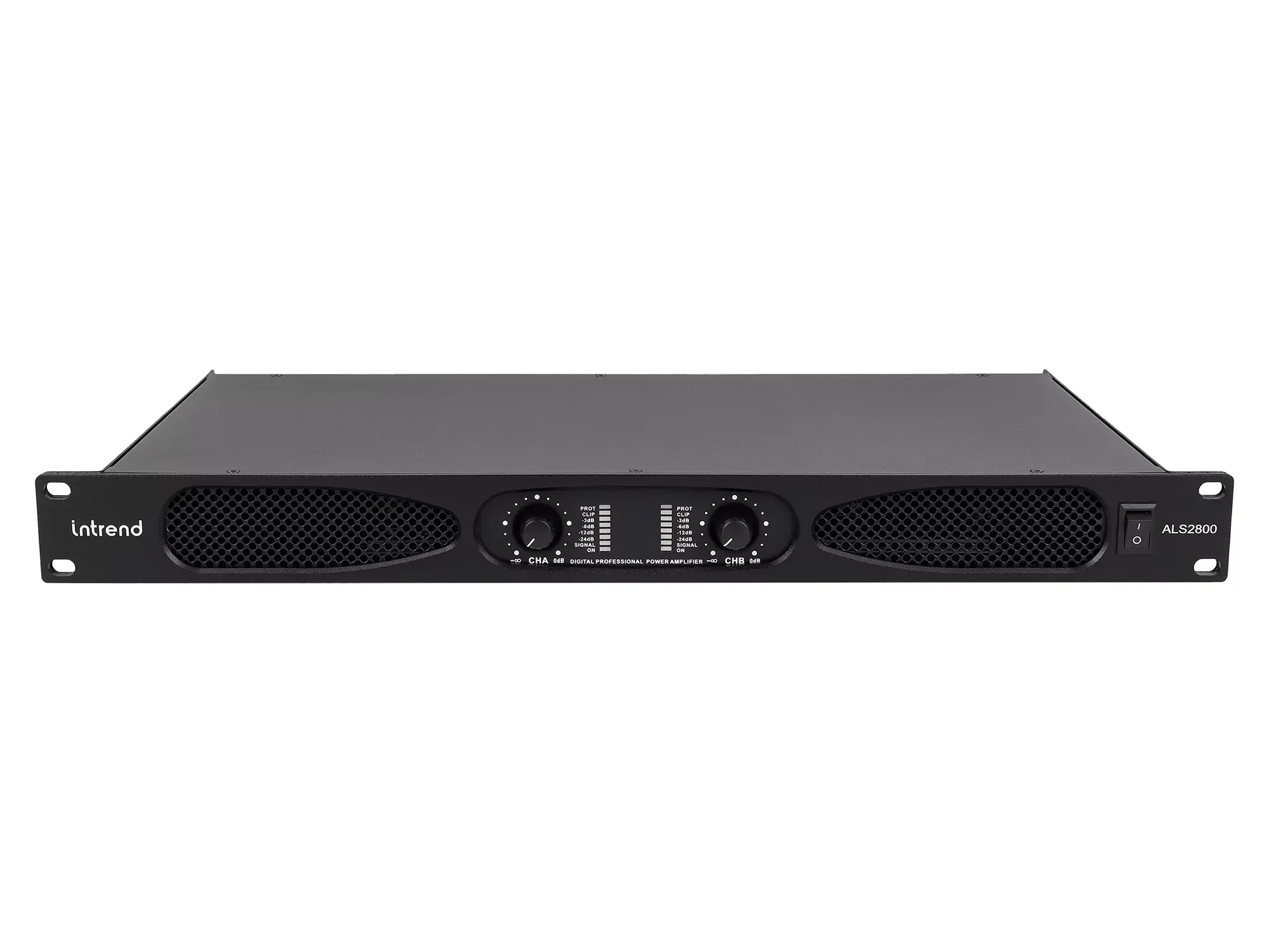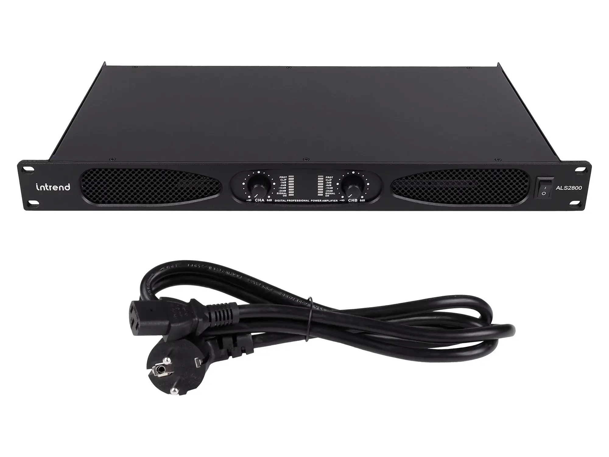 Усилитель Intrend ALS 2800 Документация и программное обеспечение по звуковому оборудованию Intrend ALS 2800 это двухканальный низкоомный усилитель мощности в компактном 1U корпусе. На передней панели усилителя находятся регуляторы громкости для каждого канала, индикаторы уровня сигнала, перегрузки и защиты. Усилитель поддерживает работу с номинальным импедансом на канал 8, 4 и 2 Ома в стереорежиме. Усилитель может работать в мостовом режиме с параметрами: 1 канал 2600 Ватт при 8 Ом, 1 канал 3500 Ватт при 4 Ом. Простота конструкции и управления усилителем делает его удобным и универсальным инструментом при построении систем звукоусиления. Для настройки акустических систем, подключаемых к усилителю, рекомендуется использовать процессор звуковых обработок. Особенности 2 канала по 800 Ватт при импедансе 8 Ом, 1300 Ватт на канал при 4 Ом, 750 Ватт на канал при 2 Ом; Поддержка мостового режима работы: 1 канал 2600 Ватт при 8 Ом, 1 канал 3500 Ватт при 4 Ом; Выключатель питания на передней панели; Регулятор громкости для каждого канала на передней панели; Индикаторы уровня сигнала, перегрузки и защиты на передней панели; Вентиляционные отверстия на передней панели; Устройство шириной в рэк, высотой 1U; Встроенный крепёж для установки в рэк.