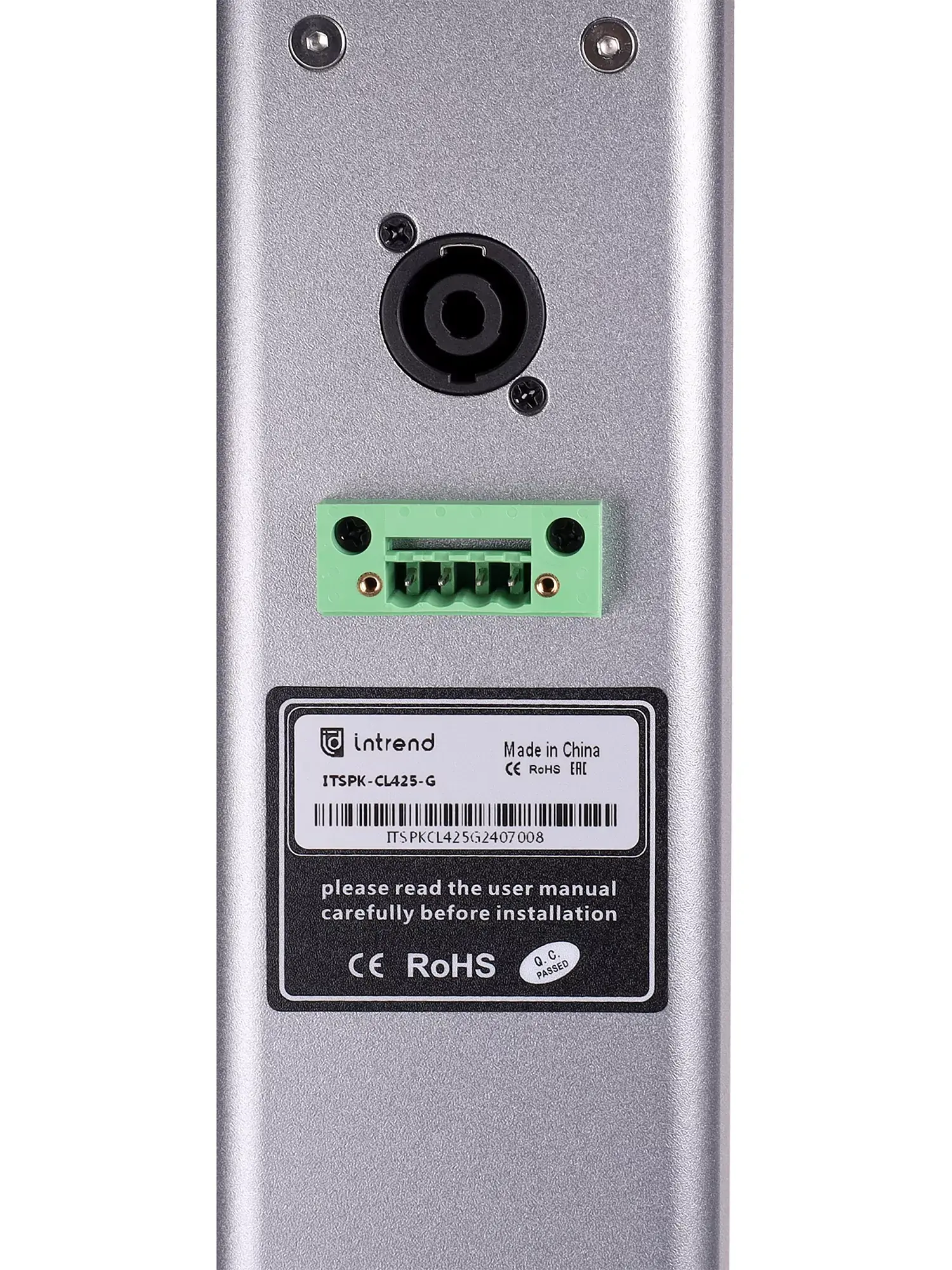 Звуковая колонна Intrend ITSPK-CL425-G Документация и программное обеспечение по звуковому оборудованию Intrend Обзор Пассивный громкоговоритель колонного типа, для использования внутри помещений. Стильное дизайнерское решение для переговорных и конференц-залов с превосходным качеством звучания в тонком корпусе. 4 x 2.5" широкодиапазонных неодимовых драйвера.