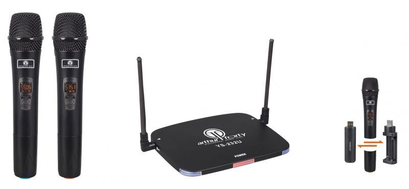 Вокальная радиосистема 96 каналов с 2 ручными передатчиками, IR-настройка. 1 - mix Jack.