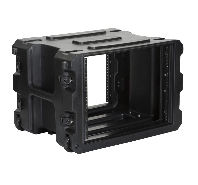 Практически неразрушаемая конструкция из формованного полиэтилена с возможностью складывания в стойку. Полноразмерные передние и задние крышки. Эргономичные боковые ручки для переноски. Встраиваемые стальные поворотные защелки. Передние и задние резьбовые рэковые пластины. Телескопическая буксировочная ручка. Прочные колеса.