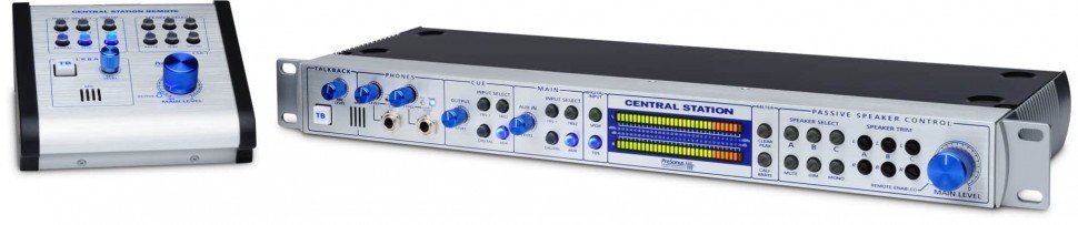 В студиях, главным образом, используются мониторы ближнего поля, но иногда есть необходимость переключаться на более крупные спикеры или на второй набор мониторов ближнего поля. Также бывает необходимо переключать исходный сигнал с разных источников на различные сеты акустики - вплоть до вариантов "с сабвуфером" и "без сабвуфера". Это могут быть цифровые источники, могут быть аналоговые. В этих случаях крайне раздражает большое количество необходимой коммутации, загромождающей Ваше рабочее пространство. Central Station PLUS является одним из самых популярных продуктов PreSonus для профессиональных студий, потому что она обеспечивает прекрасную комбинацию входов-выходов и функций коммуникации записи, позволяя Вам легко управлять многочисленными источниками сигнала и группами мониторов.