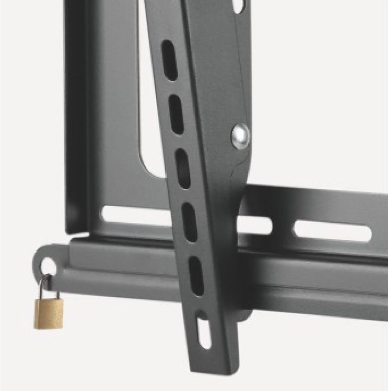 Для ТВ и панелей 32"-55", с системой защиты от краж, VESA 400x400 мм, до 107 кг, 54 мм от стены, наклон -10°/+5°, черный.
