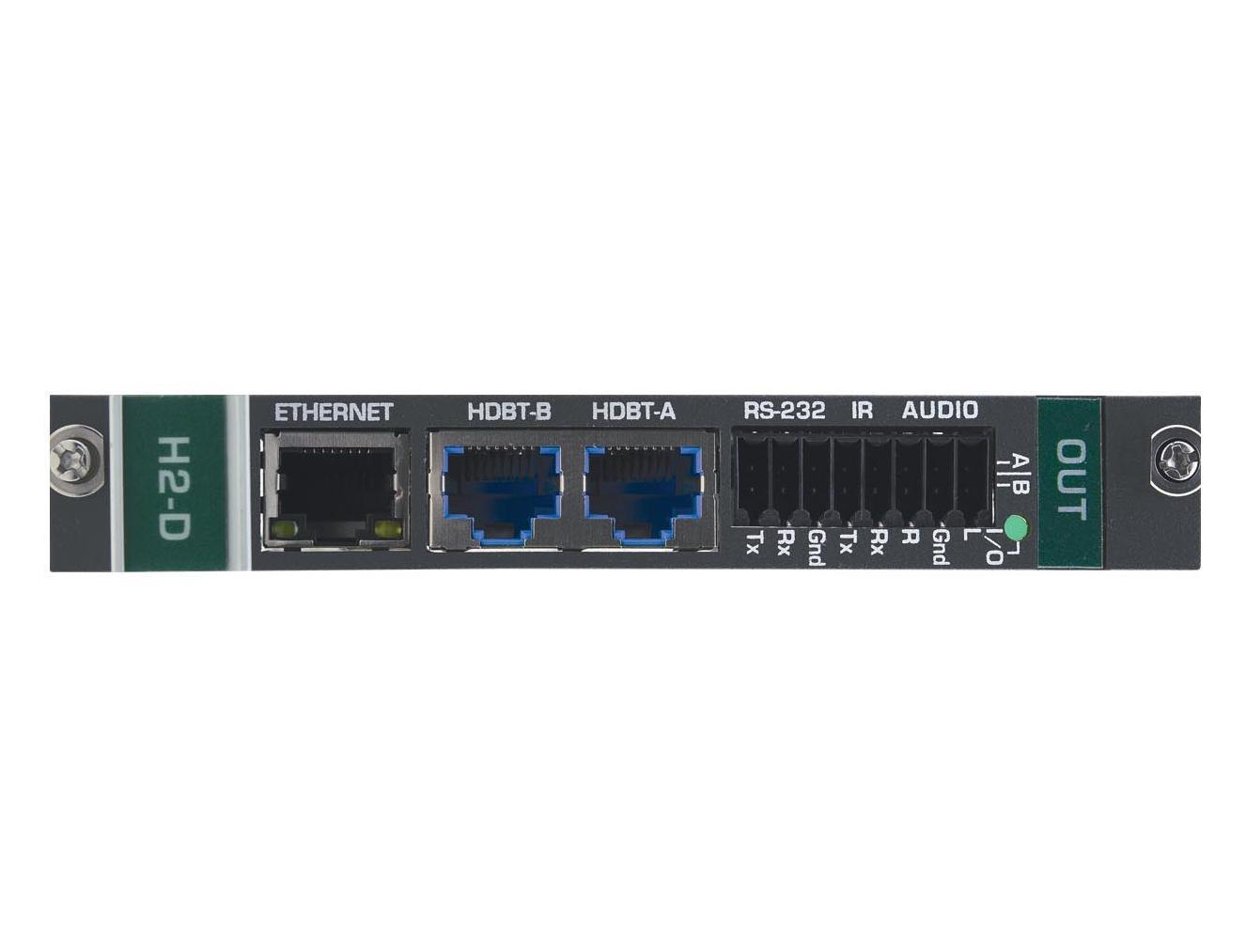 DTAxrD2-OUT2-F34 – двухканальный выходной модуль HDMI (по линии HDBaseT) c поддержкой HDR и разрешений до 4K@60 Гц (4:4:4), предназначенный для использования в составе шасси мультиформатного модульного матричного коммутатора VS-34FD. Модуль осуществляет вывод двух сигналов HDBaseT c аналоговым аудио, а также двунаправленных сигналов RS-232 и ИК из модульного шасси и передачу их по линии HDBaseT.