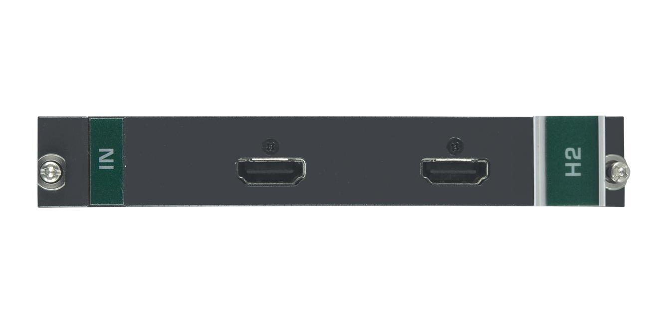H2-IN2-F34 — двухканальный входной модуль HDMI c поддержкой разрешений до 4K@60 Гц (4:4:4), предназначенный для использования в составе шасси мультиформатного модульного матричного коммутатора VS-34FD. Модуль осуществляет ввод двух сигналов HDMI в модульное шасси.