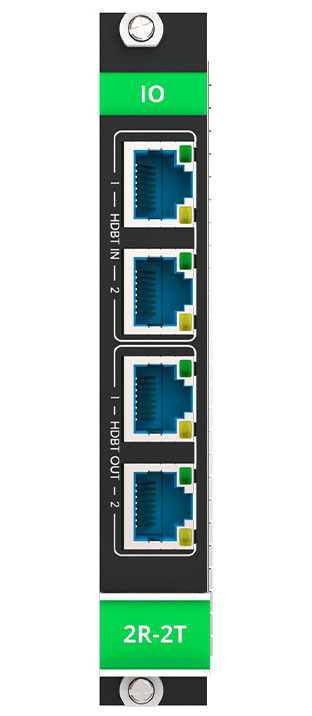 MC3-2R-2T — модуль с двумя входами и двумя выходами HDBaseT 3.0, предназначенный для использования в составе шасси совместимого мультиформатного модульного матричного коммутатора. Модуль MC3-2R-2T может устанавливаться в любой из слотов шасси матричного коммутатора. Входные сигналы модуля независимо переключаются на любой выход модульного матричного коммутатора, а любой сигнал на входе матричного коммутатора независимо переключается на любой из двух масштабируемых выходов модуля.