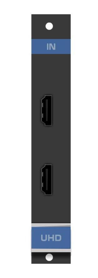 UHD-IN2-F16 – двухканальный входной модуль HDMI c поддержкой разрешений до 4K@60 Гц, 4:2:0, предназначенный для использования в составе шасси мультиформатного модульного матричного коммутатора серии VS-1616. Модуль осуществляет ввод двух сигналов HDMI в модульное шасси.