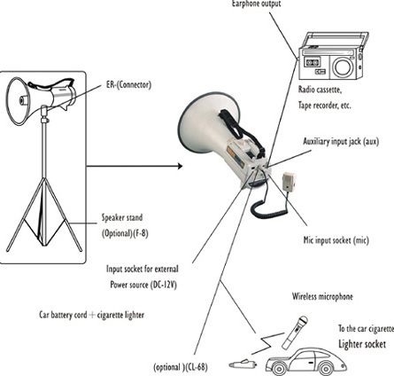 Рупорный громкоговоритель (мегафон) с выносным микрофоном.