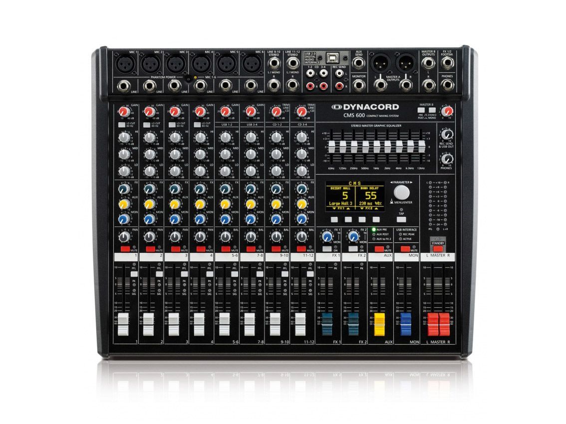 Отличительной характеристикой секции микшера является конфигурации каналов 4 + 4. В дополнение к стандартной конфигурации 6 моно-каналов Mic/Line и 2 линейных стерео-канала, CMS 600-3 оснащен двумя цифровыми стерео-входами (по USB), сигналы с которых автоматически направляются на каналы 5-6 и 7-8. Таким образом, вы получаете 4 стерео-канала, что должно особенно понравиться диджеям.