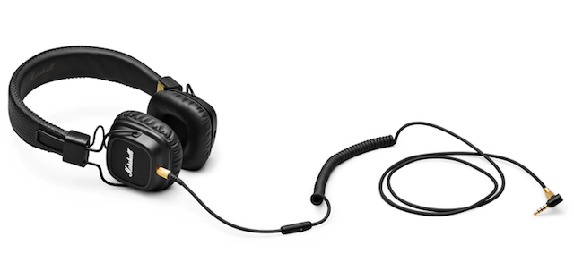 - Конструкция. Marshall Major II Black имеют удобные по форме амбушюры, которые не вызывают дискомфорт даже при длительном ношении. Шнур подключения оснащен разъемом 3.5” и может быть подсоединен к динамикам с любой стороны. Пульт управления, расположенный на кабеле, позволяет дистанционно переключать режимы приема сигнала. Для удобства транспортировки и хранения конструкция наушников сделана складной.