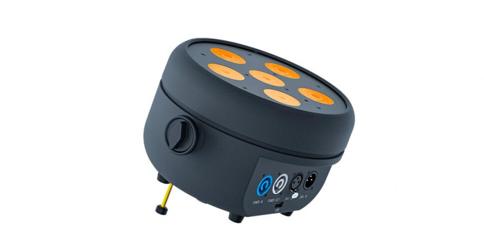 Источник света – 6*10 Вт RGBW мультичип. Средний угол освещения. Специальная лира с резиновыми ножками для установки на пол. Выдвижная ножка на задней крышке корпуса для напольной установки (или внутри фермы) под наклоном без лиры. На нижней части корпуса – USB выход для подачи питания 5В для внешних устройств. ИК пульт для дистанционного управления. Правильное сочетание цветов и равномерное освещение без паразитных засветок и теней. Компактный прибор для небольших инсталляций, кафе и ресторанов, где важна бесшумная и надежная работа оборудования и аккуратный внешний вид.