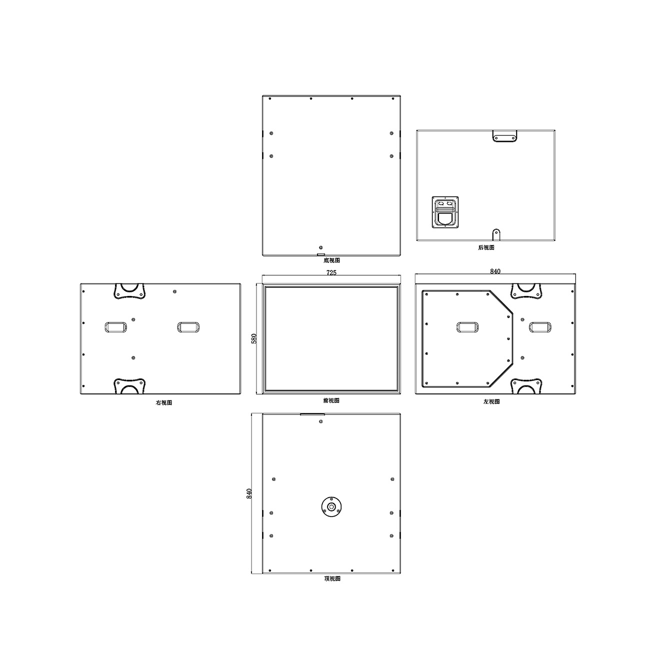 В верхней части корпуса предусмотрены отверстия для крепления верхнего кронштейна, которые можно использовать в сочетании с полночастотными опорами для динамиков.