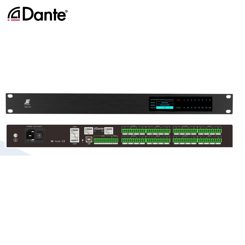 Устройство предлагает 16‑канальный аналоговый аудиовход (микрофонного/линейного уровня) и 16‑канальный аналоговый выход, дополненные 128 каналами Dante для сетевой передачи аудиосигнала — с высокой пропускной способностью, малой задержкой и широкой совместимостью. Благодаря свободно настраиваемым потокам передачи сигналов можно гибко выстраивать маршрутизацию в системе.