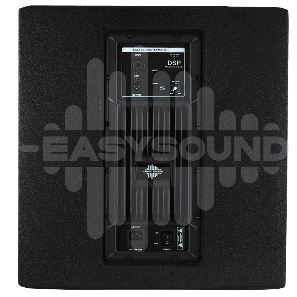 Сабвуфер оснащен модулем усиления класса D с встроенным цифровым процессором сигнала (DSP), что позволяет достичь пиковой мощности в 1200 Вт. Это делает EASYSOUND HARMONY 115B идеальным выбором для использования на концертах, вечеринках и других мероприятиях, требующих мощных басов.
