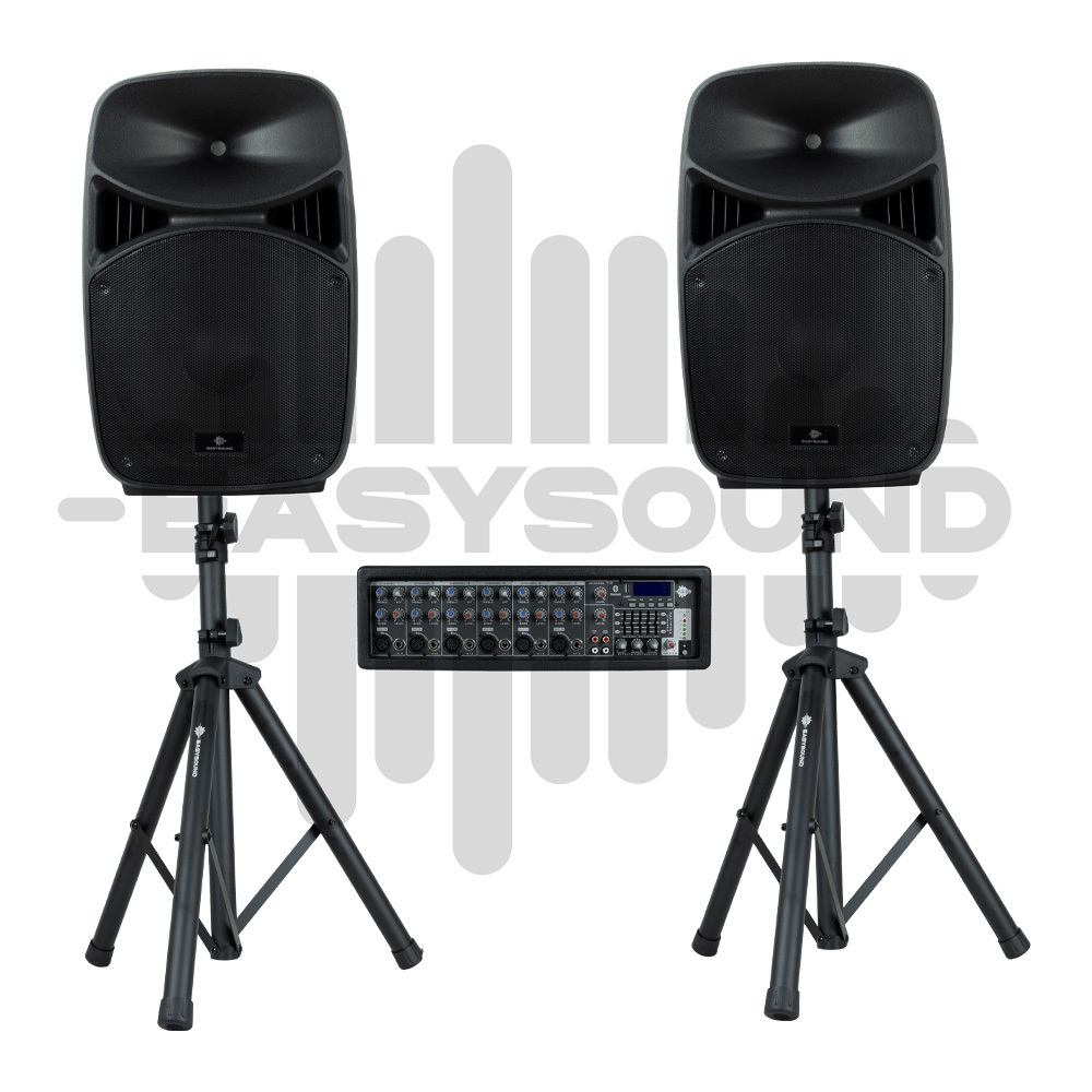 Состав набора: акустическая система 15": 2 шт. акустические стойки: 2 шт. микшерный пульт: 1 шт. микрофон: 1 шт. коммутация: 5-ти метровый Jack-Jack кабель для подключения колонок - 2 шт.