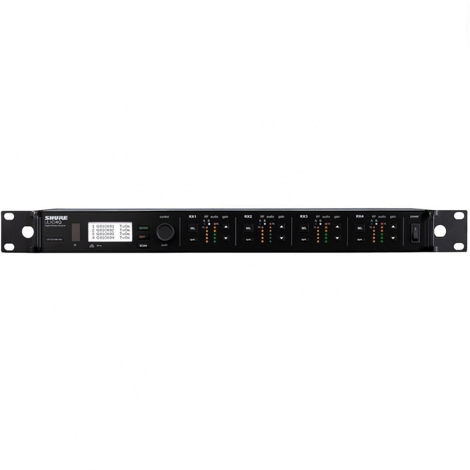 SHURE ULXD4QE - это четырехканальный приемник для использования в радиосистемах Shure серии ULX-D®.