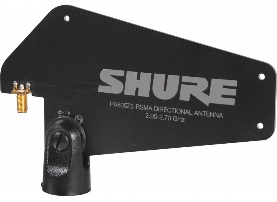SHURE PA805Z2-RSMA – пассивная направленная антенна, важнейший элемент цифровых радиосистем GLX-D® Advanced. Такая антенна обеспечивает стабильность передачи сигнала в беспроводных системах, улучшает приём, сводит к минимуму потери. Основное преимущество антенны перед стандартными всенаправленными моделями – она исключает возникновение интерференции от любых посторонних источников радиосигнала, работающих на частоте 2.4 ГГц и находящихся недалеко от приёмников радиосистемы Shurе (например, Wi-Fi модулей), обеспечивает наилучшее соотношение сигнал/шум. Антенну можно расположить на удалении от передатчика системы в зоне прямой видимости и направить непосредственно на него. PA805Z2-RSMA - антенна профессионального уровня, которую можно установить на микрофонную стойку или на стену. Она имеет компактные габариты, удобна в монтаже и использовании. Размеры антенны PA805Z2-RSMA: 105 мм х 164 мм х 27,5 мм. Рабочий диапазон радиочастот – от 2050 МГц до 2700 МГц. Сопротивление – 50 Ом. Для подключения требуется кабель RSMA (поставляется в комплекте).