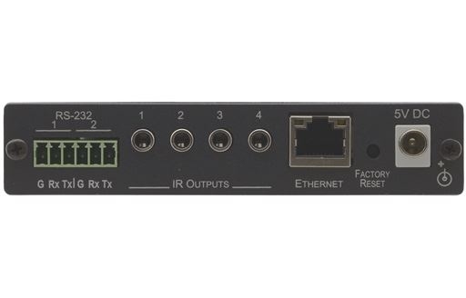 Интерфейсы управления: 2 порта RS-232 для управления оборудованием при помощи последовательных команд 4 ИК-порта для подключения ИК-излучателей для управления мультимедийным оборудованием+ 1 ИК-порт для обучения командам от ИК-пульта ДУ.Поддержка Plug and Play, статического или динамического предоставления IP-адреса (DHCP). До 40 IP-клиентов, работающих одновременно