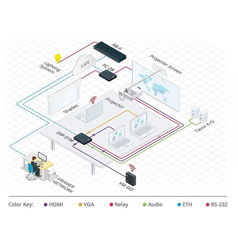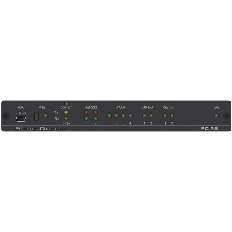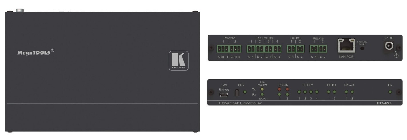 FC-28 — преобразователь интерфейса, работающий в сети Ethernet и имеющий 10 портов управления: 2 RS-232, 4 ИК, 2 GPI/O и 2 реле с «сухими контактами». При помощи данного устройства пользователь по своей локальной сети может удаленно управлять как специализированным аудио-видео оборудованием, таким как масштабаторы, видеопанели, усилители мощности и медиаплееры, так и оборудованием общего назначения, включающим системы освещения, вентиляции и кондиционирования помещения, моторизованные экраны и шторы, запирающие устройства дверей и окон, датчики движения и т.д., используя вышеуказанный набор интерфейсов. Устройство может использоваться в качестве шлюза-расширителя портов в системе Kramer Control.