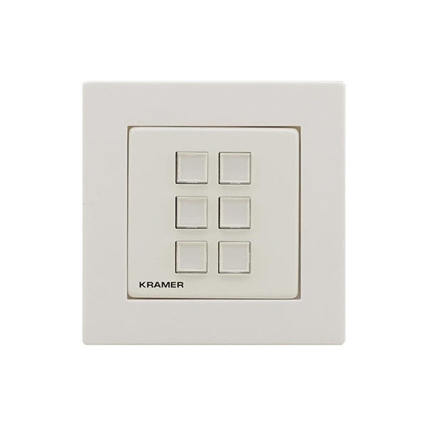 RC-206 — 6-кнопочная панель управления cо встроенным контроллером помещения в вариантах исполнения US-D и EU. Панель RC-206 предназначена для использования в качестве устройства управления как аудио и видео оборудованием, так и проекционными экранами, моторизованными шторами и прочим оборудованием помещения. Управление осуществляется посредством интерфейсов Ethernet, RS-232, RS-485, GPI/O, ИК и замыкания сухих контактов реле. Также имеется интерфейс K-NET™, позволяющий подключать вспомогательные кнопочные панели или контроллеры помещения. Таким образом, панель может являться как отдельным самостоятельным контроллером помещения, так и одним из компонентов системы управления K-NET™, а также пользовательским интерфейсом в составе платформы Kramer Control.