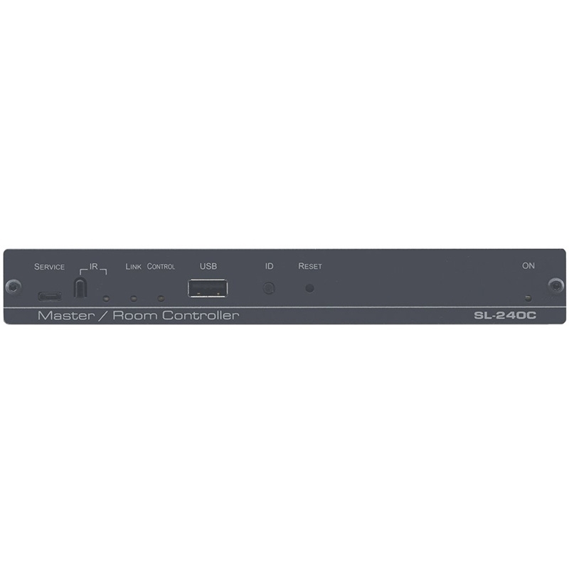 SL-240C — главный контроллер (Brain) управляемого пространства для системы,работающий в сети Ethernet, поддерживающий питание PoE и имеющий 4 группы портов управления c различными интерфейсами: 4 порта RS-232, 4 ИК-порта, 4 порта GPI/O и 4 реле с «сухими контактами». При помощи платформы Kramer Control с использованием SL-240C может осуществляться управление как специализированным аудио-видео оборудованием, таким как масштабаторы, видеопанели, усилители мощности и медиаплееры, так и оборудованием общего назначения, включающим системы освещения, вентиляции и кондиционирования помещения, моторизованные экраны и шторы, запирающие устройства дверей и окон, датчики движения и т.д. Количество портов управления в системе может быть увеличено путем добавления в сеть Ethernet необходимого числа шлюзов-расширителей портов.