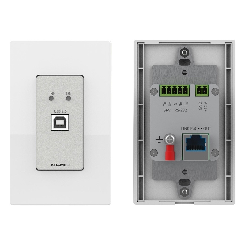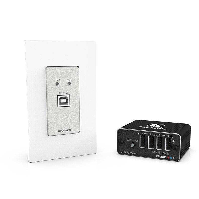 - Простота и удобство инсталляции благодаря передаче сигнала и возможности обеспечения питания по единому кабелю витой пары. Панель передатчика WP-2UT соответствует размеру стандартных одноместных монтажных коробок в исполнении US и предусматривает установку в стену, поверхность стола и т.д. Компактный корпус приемника PT-2UR Kramer PicoTOOLS® и низкое тепловыделение (отсутствие встроенного вентилятора охлаждения) позволяет разместить прибор на задней стороне другого устройства, или установить четыре прибора в один ряд в стандартной аппаратурной 19-дюймовой стойке (1U) при помощи опционального рекомендованного адаптера