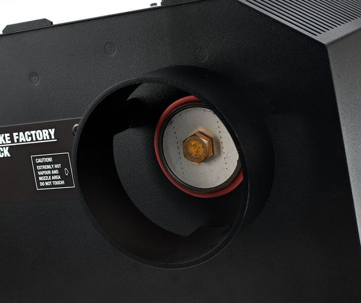 DMX, таймер и крышка шланга в стандартной комплектации. Генерирует непрерывный дым с уменьшенной производительностью, получается очень высокий выход дыма, имеется возможность регулировки при помощи кнопок управления от 1% до 99%.
