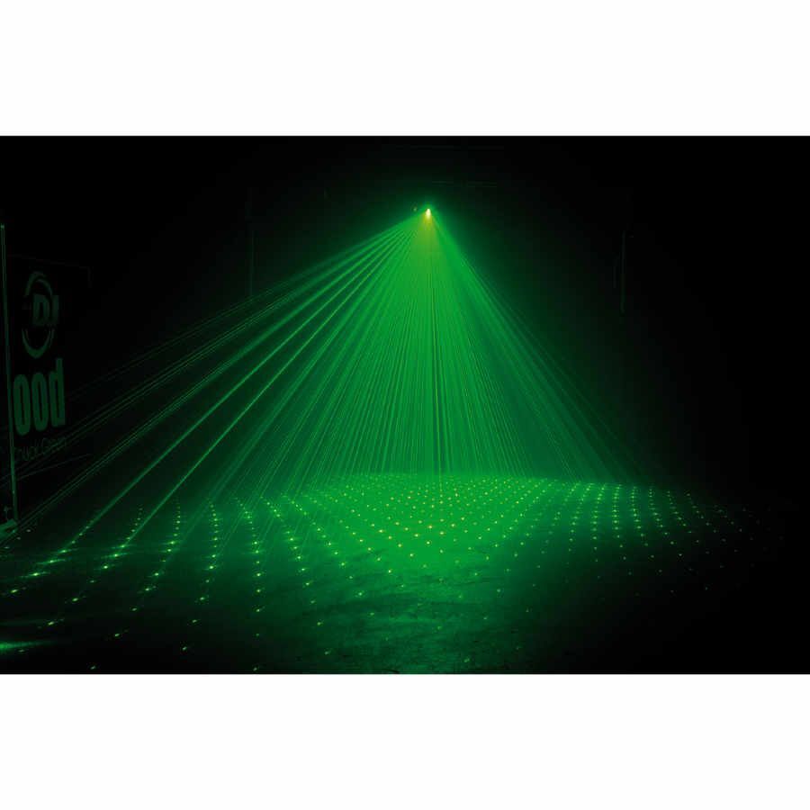 - 5 DMX-каналов = синий лазер, зеленый лазер, вращение 1, вращение 2, макрос