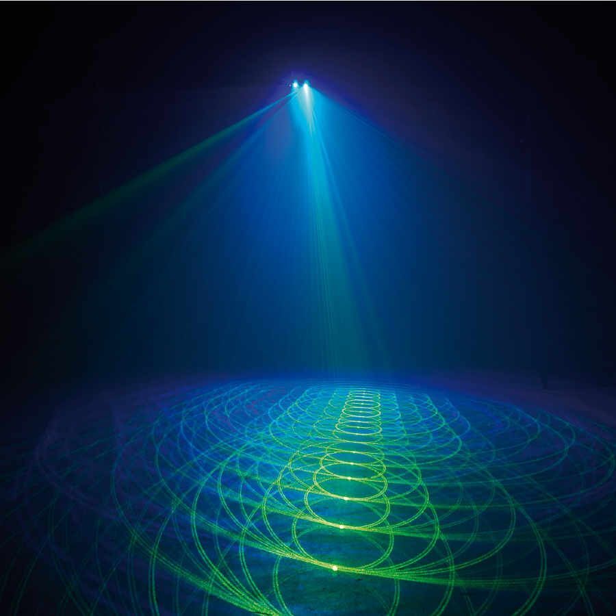 - Движение зеленого и фиолетово-синего лазеров (DMX) создает новое измерение восхищения