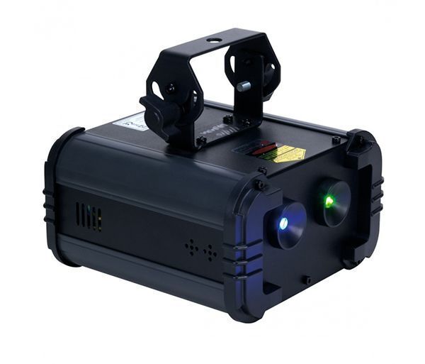 American DJ Royal 3D зеленый лазер мощностью 30мВт+фиолето-синий лазер мощностью 350мВт. 5 DMX каналов = синего лазера, зеленый лазер, вращение 1 , вращение 2, макросыв, 3 режима работы: DMX, Sound Active и Master Slave, звуковая активация по встроенным программам, угол луча 90гр. Лазерный эффект стобоскопа. Кронштейн крепления в комплекте. Разъем XLR3pin. Вход 1/4“ для дополнительного пульта дистанционного управления UC3 (продается отдельно). Габариты: 222x205x194мм. Вес 3,2кг.