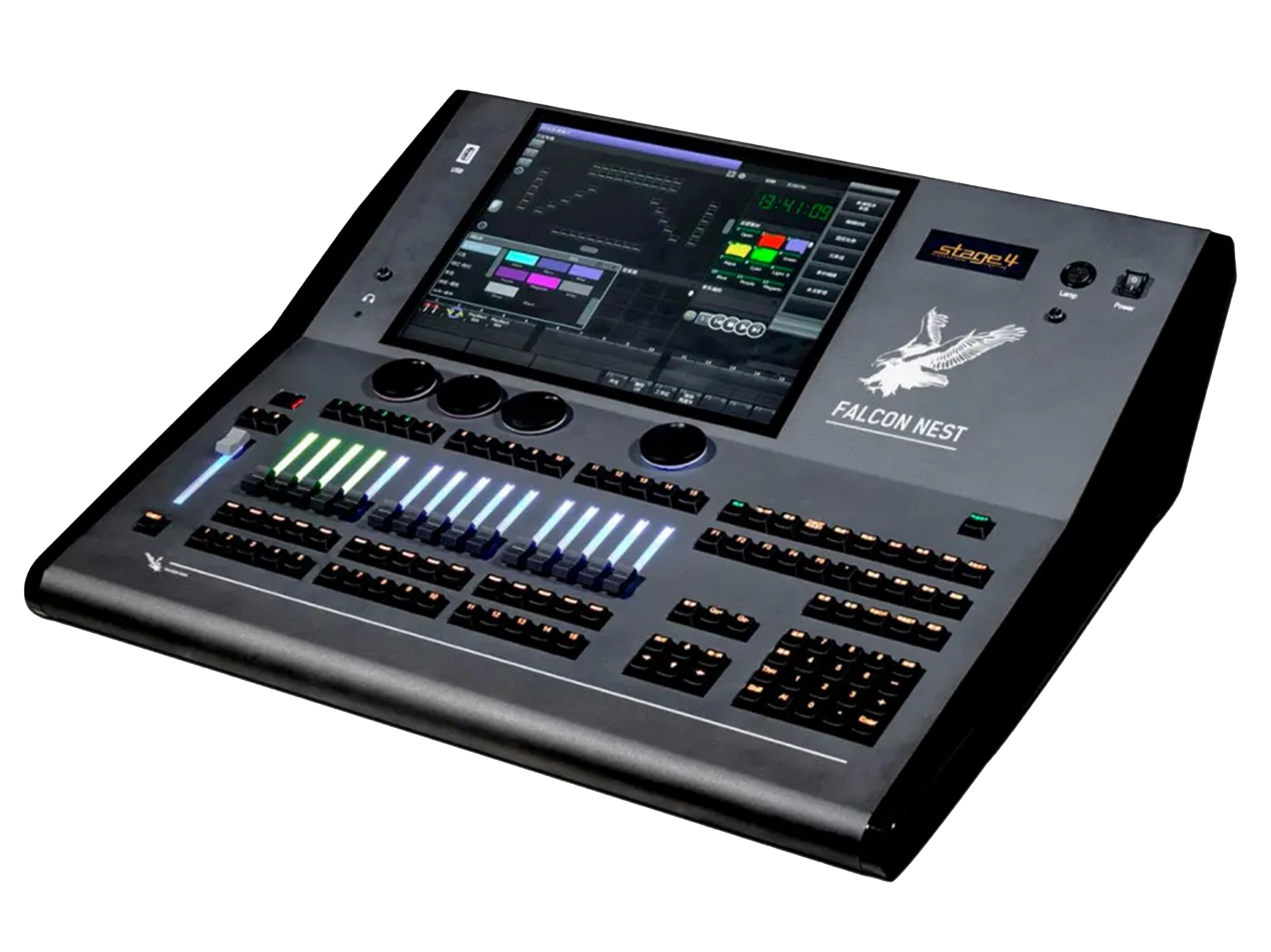 STAGE4 FALCON NEST - консоль управления светом представляет собой высокотехнологичное оборудование, предназначенное для управления освещением в различных сценических и производственных условиях. Количество каналов: 2048 DMX-каналов или 4 DMX-потока; Четыре оптически изолированных DMX-выходов (интерфейс XLR) и ART-NEТ ((интерфейс Ethernet) выход позволяют управлять четырьмя DMX-потоками; Один 15-дюймовый сенсорный ЖК-экран с высоким разрешением; 15 плейбек-фейдеров с возможностью записи на 80 страниц позволяют, в общей сложности, записать 1200 плейбеков; 15 плейбек-клавиш с возможностью записи на 80 страниц; Интерфейсы MIDI In / Out и Thru для подключения и работы с другими устройствами; Интерейс 3.5 мм Mini-jack для вывода аудио;