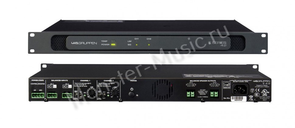 Lab Gruppen E4 2 – это отличный двухканальный усилитель мощности, предназначенный для постоянных инсталляций профессионального уровня. Данная модель вобрала в себя уникальную технологию IDEEA и источники питания, строго соответствующие стандарту EnergyStar 2.1 и способные работать с напряжением от 70 до 265 В при частоте 50 или 60 Гц.
