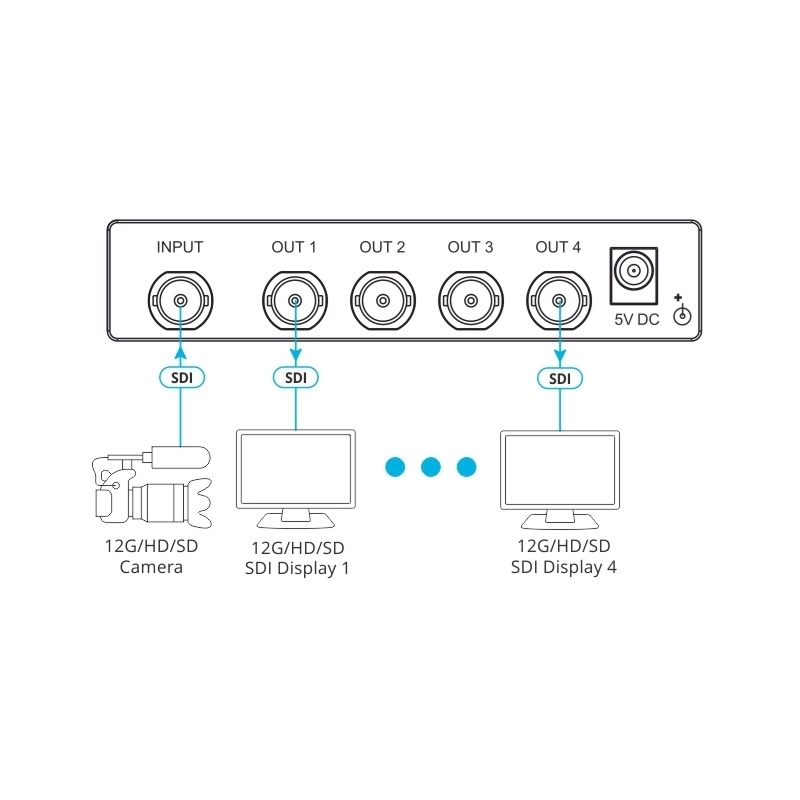 Расстояние передачи сигнала до 300 м для сигналов SD-SDI, до 200 м для сигналов HD-SDI, до 100 м для сигналов 3G и 6G HD-SDI, до 80 м для сигналов 12G HD-SDI