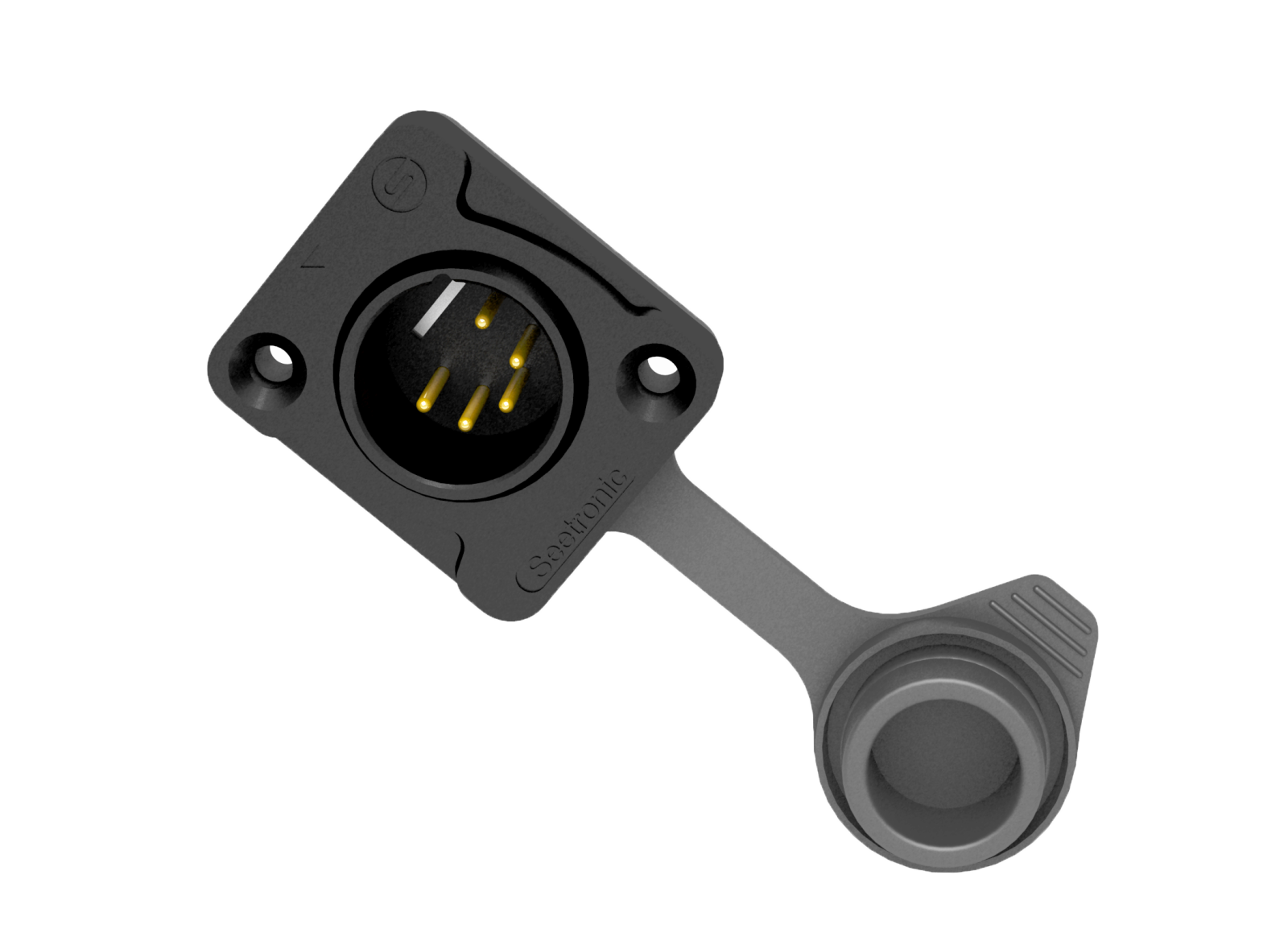 - 5-контактный водонепроницаемый разъем XLR «папа» с корпусом из цинкового сплава и черным покрытием, а также позолоченными контактами