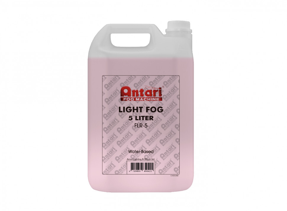 Жидкость для образования дыма. Данная жидкость оптимизирована для использования в фог-машинах Antari, однако подходит и для аппаратов большинства других производителей. Она сделана на водной основе, не дает маслянистого осадка, не пахнет, не вызывает раздражения, нетоксична и негорюча. Поставляется в 1-литровой или 5-литровой упаковке в трех вариантах. Жидкость серии FLR дает легкий быстро улетучивающийся, FLG - среднегустой, а FLY - густой устойчивый дым.